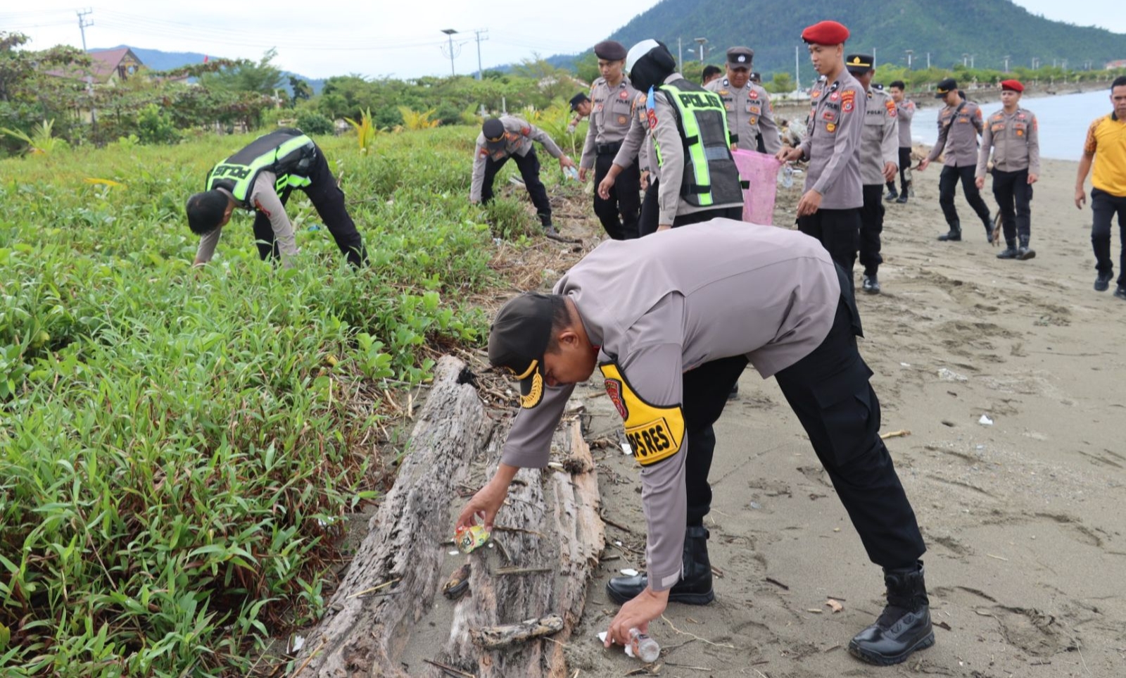 Aksi bersih-bersih itu dipusatkan di halaman Mapolres sampai kawasan pesisir Kelurahan Lasusua, Kecamatan Lasusua, Kabupaten Kolaka Utara. Rumput liar dirapikan, sampah plastik di trotoar dikumpulkan, dan botol-botol bekas di sepanjang bibir pantai dimasukkan ke dalam karung.