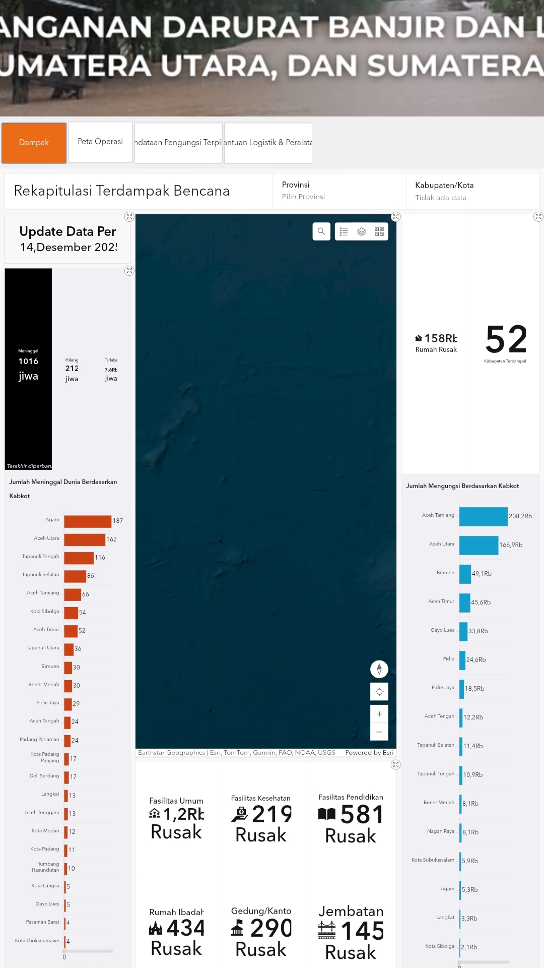 JAKARTA, REPUBLIX.ID – Bencana banjir bandang dan longsor yang melanda Pulau Sumatera meninggalkan duka mendalam. Hingga Minggu soreh (14/12/2025), berdasarkan data Badan Nasional Penanggulangan Bencana (BNPB) jumlah korban meninggal dunia telah menembus angka 1.016 orang, sementara 212 orang lainnya masih belum ditemukan.
