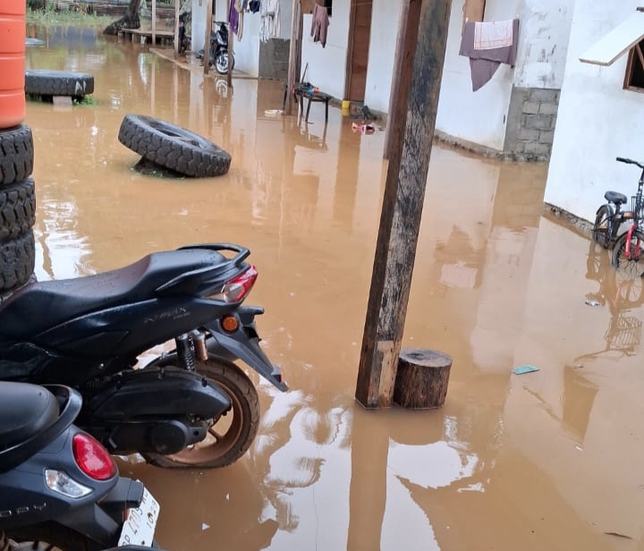 “Untuk saat ini air banjir nyaris masuk ke rumah warga. Kalau hujan reda, air biasanya cepat meresap karena kondisi tanahnya berpasir,” ujarnya.