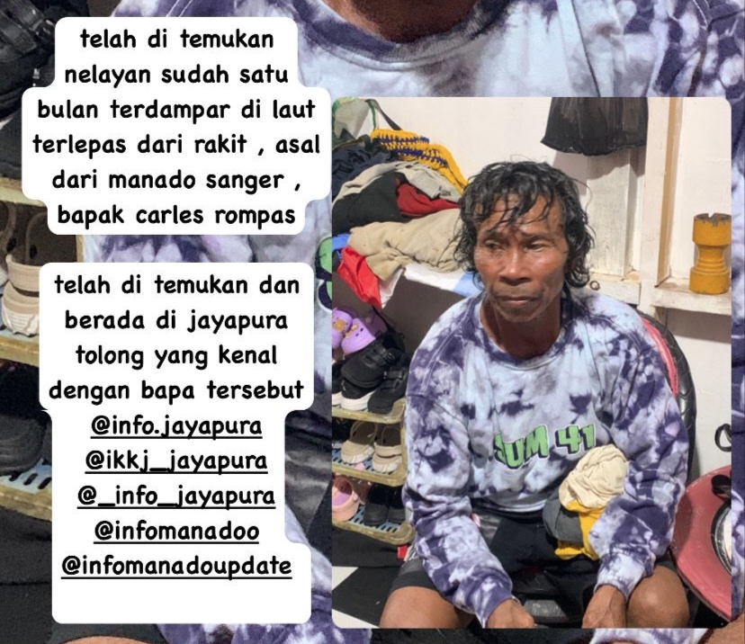 “100 mil pantai Jayapura dari Manado. Itu orangnya di dalam yang pake baju putih. Jawab dulu bro. Keluar dulu bro,” ujar salah satu nelayan dengan nada cemas.