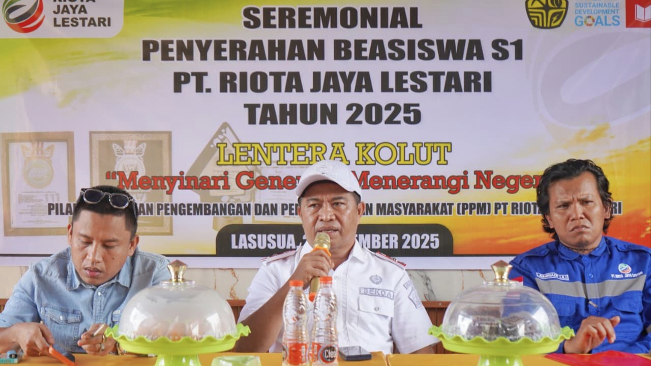 KOLAKA UTARA, REPUBLIX.ID – Komitmen PT Riota Jaya Lestari (RJL) dalam mendukung peningkatan kualitas pendidikan di Sulawesi Tenggara kembali dibuktikan melalui penyerahan Beasiswa Riota 2025 kepada puluhan mahasiswa di Kabupaten Kolaka Utara, Rabu (24/12/2025).